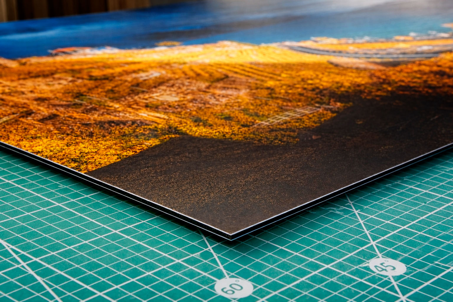 Nous sommes spécialisés dans l’impression en encres pigmentaires sur papier mat fine art, contrecollée à la main sur aluminium Dibond 3 mm — un support rigide, léger et durable, pensé pour une présentation de qualité galerie.
